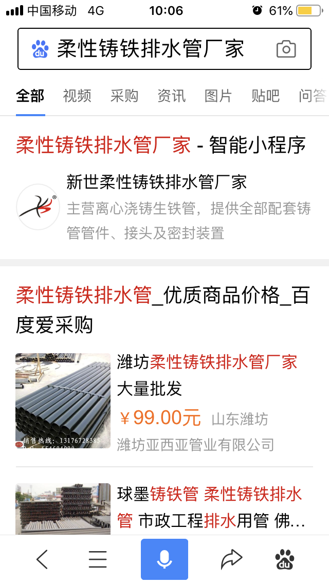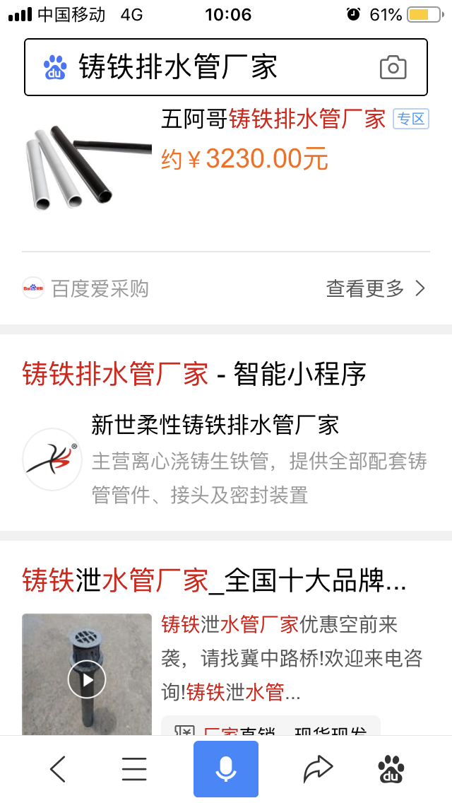 百度小程序:新世鑄鐵排水管、新世柔性鑄鐵管廠家、新世柔性鑄鐵排水管廠家、新世環(huán)氧鑄鐵管廠家、新世鑄鐵管件廠家、新世環(huán)氧排水管廠家、新世環(huán)氧樹脂鑄鐵管廠家、新世鑄鐵排水管件廠家